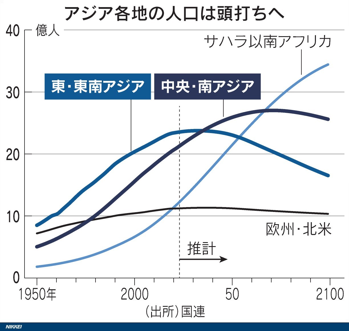 人口の増加は日本の高度成長や東アジアの急速な発展を後押しました。国連の報告書は「良好な年齢分布による利益を最大化するために、すべての年齢層でヘルスケアと質の高い教育への機会を確保するとともに、質の高い雇用を生み、人的資本の発展に投資すべきだ」と強調しています。